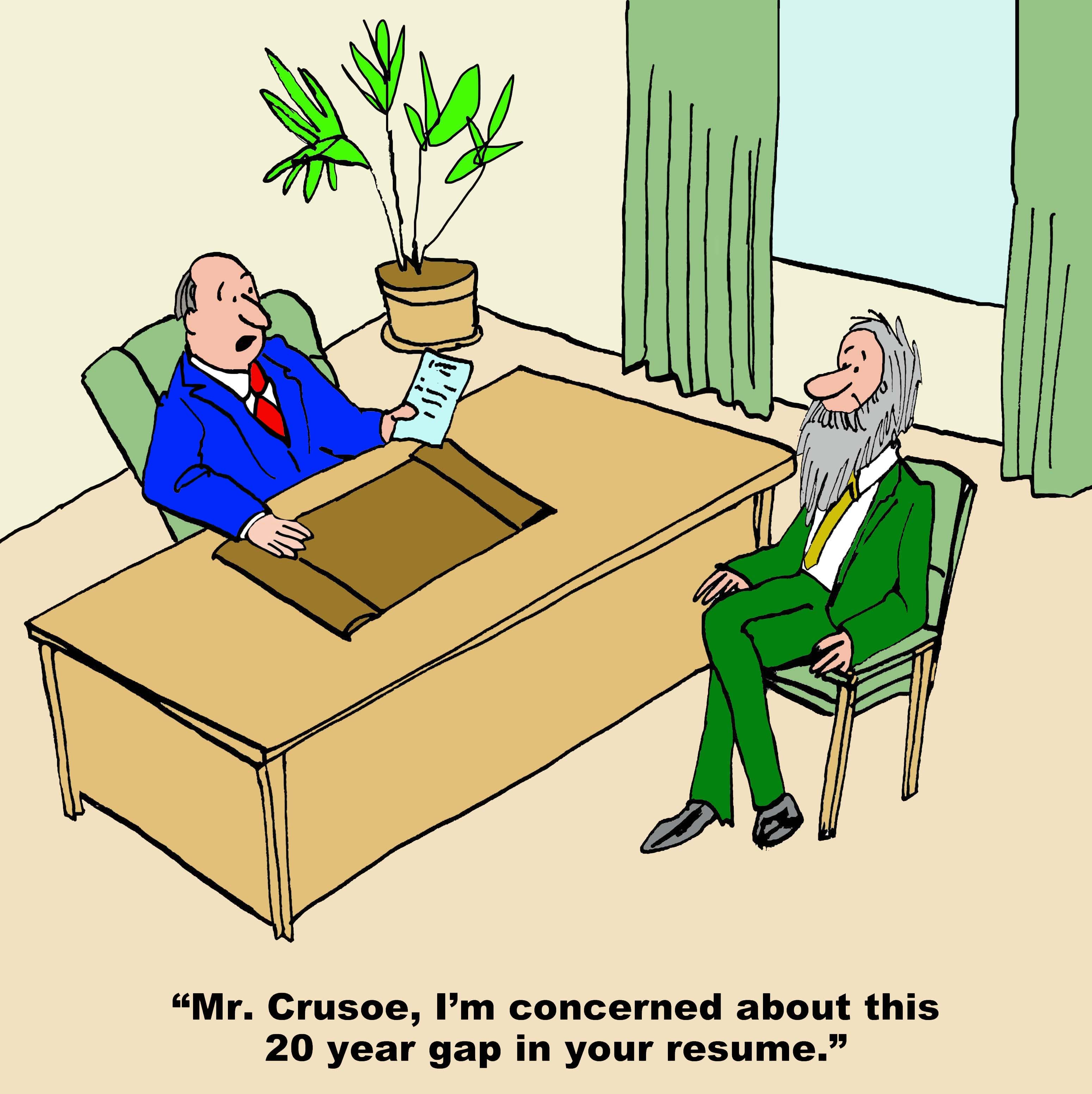 “Mr. Crusoe, I’m concerned about this 20 year gap in your resume.”
